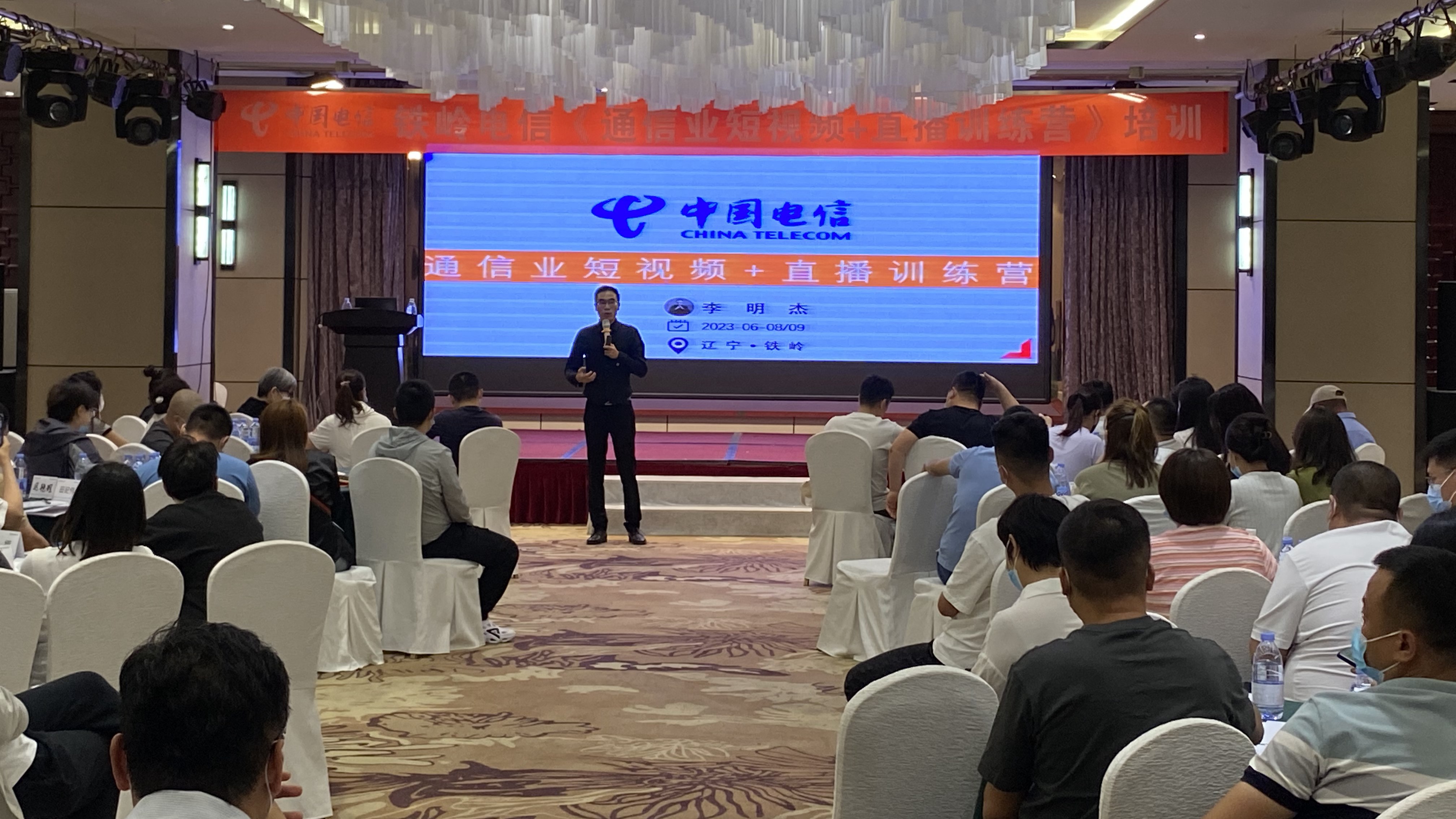 李明杰老師受邀走進(jìn)中國電信鐵嶺公司為來自鐵嶺電信公司60多位廳店負(fù)責(zé)人、營銷經(jīng)理講授兩天《通信業(yè)短視頻+直播訓(xùn)練營》課程