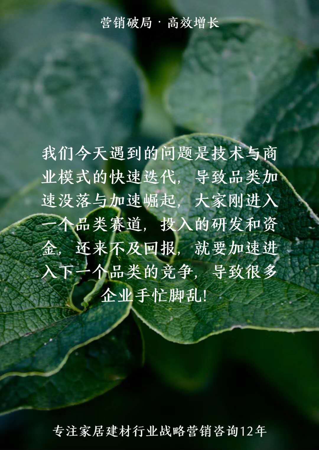 我們今天遇到的問題是技術與商業(yè)模式的快速迭代,導致品類加速沒落與加速崛起,大家剛進入一個品類賽道,投入的研發(fā)和資金,還來不及回報,就要加速進入下一個品類的競爭,導致很多企業(yè)手忙腳亂!
