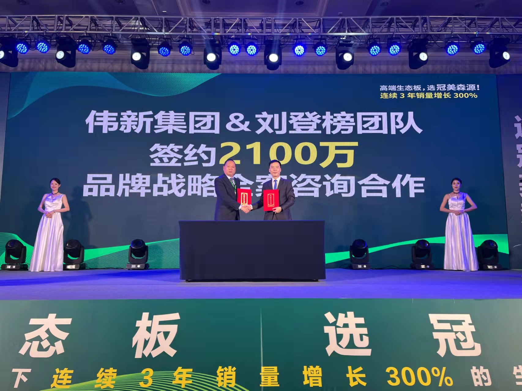 ![]() 會議現(xiàn)場,廣西偉新木業(yè)集團(tuán)有限公司總經(jīng)理溫昌榮與北京和君智業(yè)總經(jīng)理劉登榜簽署2100萬品牌戰(zhàn)略合作,劉登榜團(tuán)隊數(shù)十位老師將為冠美森源品牌打造高端市場保駕護(hù)航。