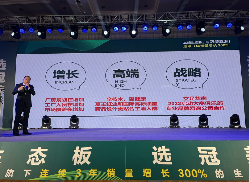 開陽春三月,與冠同行,廣西偉新木業(yè)集團(tuán)高端生態(tài)板品牌《冠美森源》新品發(fā)布會在北海香格里拉酒店盛大舉辦,偉新木業(yè)集團(tuán)2009年創(chuàng)辦至今,始終遵循品質(zhì)至上的原則,在產(chǎn)品技術(shù)上不斷研發(fā)升級,引進(jìn)先進(jìn)的生產(chǎn)技術(shù)和生產(chǎn)設(shè)備,旗下?lián)碛邪舜蠊臼蠊S,在2022年之際更是以主打品牌《冠美森源》為集團(tuán)先鋒部隊,推向全國市場。冠美森源2021年在市場拼搏中取得優(yōu)異成績,更是以連續(xù)3年銷量增長300%的速度成為行業(yè)新標(biāo)桿!
