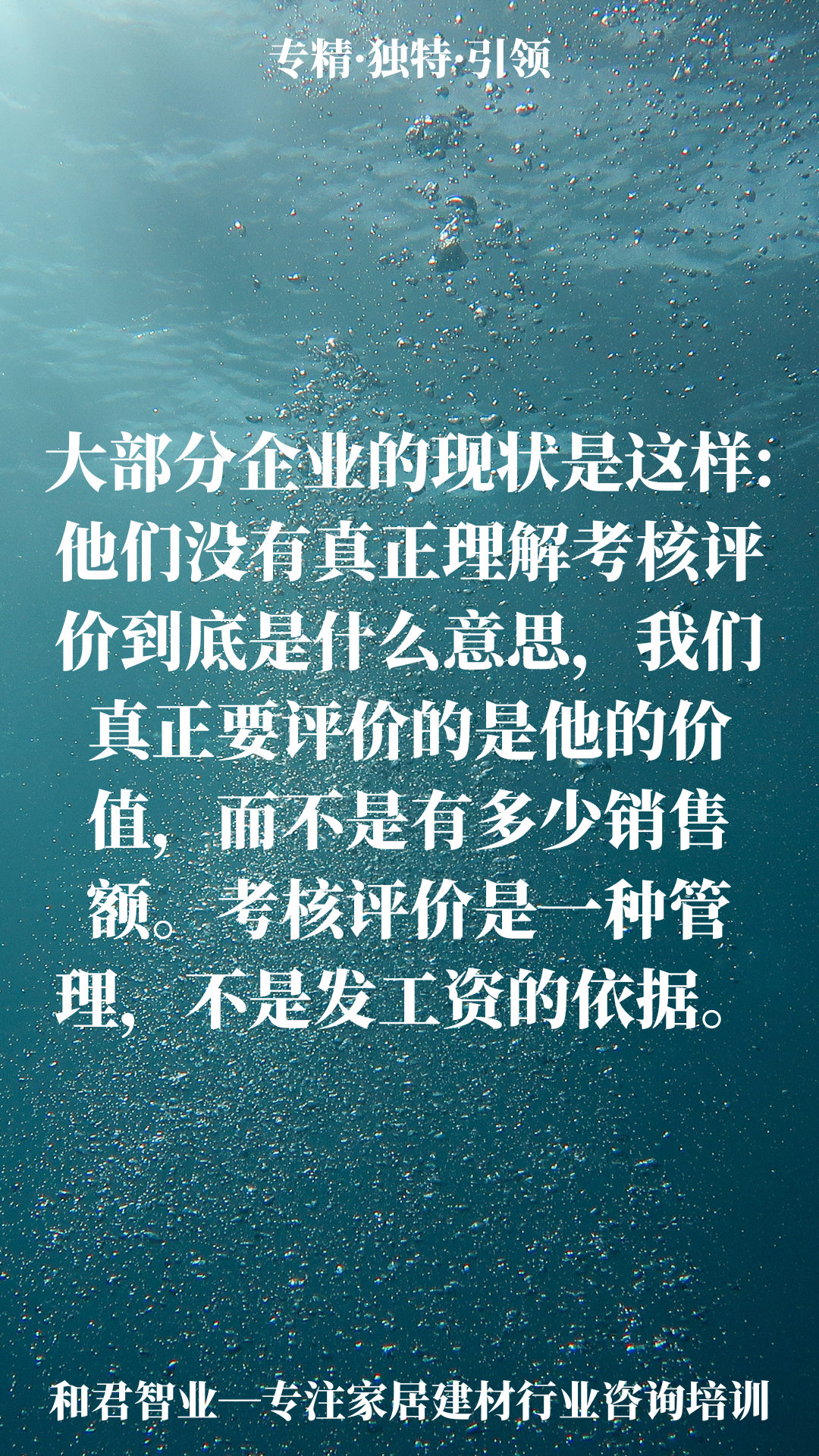 北京和君智業(yè)教育科技有限公司總經(jīng)理 2022中國百強(qiáng)講師 大商公司化運營專業(yè)顧問 資深實戰(zhàn)派講師 戰(zhàn)略營銷語錄:考核評價!大部分企業(yè)的現(xiàn)狀是這樣:他們沒有真正理解考核評價到底什么意思,我們真正要評價的是他的價值,而不是有多少銷售額,考核評價是一種管理,不是發(fā)工資的依據(jù)。