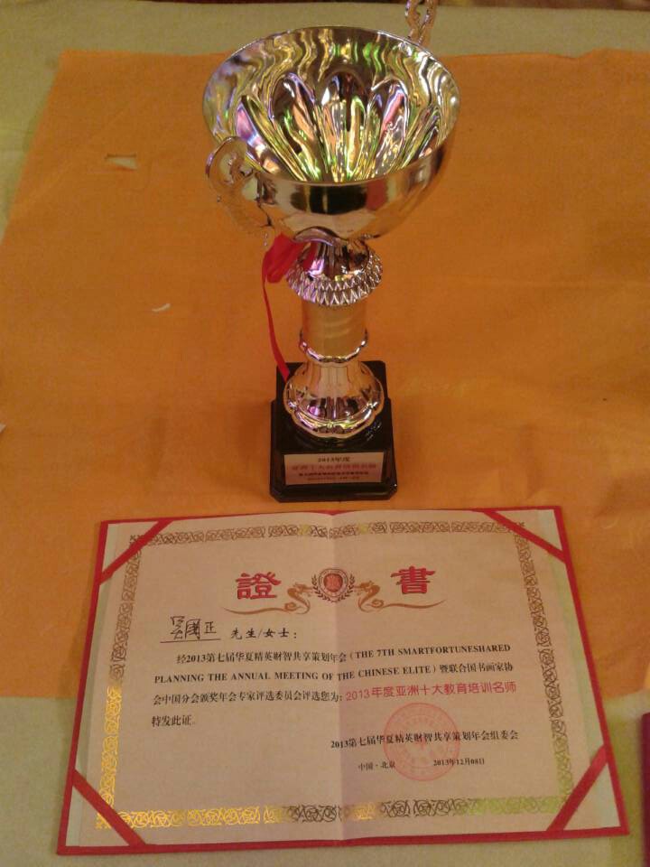 吳國正老師榮獲2013年亞洲十大教育培訓(xùn)名師殊榮