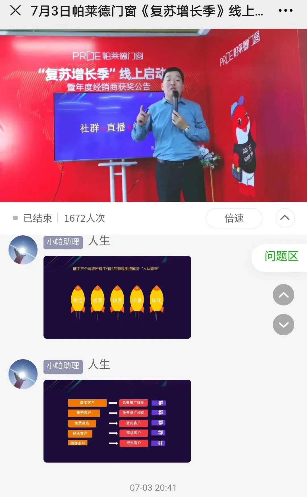 2020年7月3日,恭喜劉登榜老師團(tuán)隊(duì)助力帕萊德門窗《復(fù)蘇增長(zhǎng)季·全國(guó)聯(lián)動(dòng)與標(biāo)桿市場(chǎng)打造》線上啟動(dòng)會(huì)圓滿成功舉辦! 本次啟動(dòng)會(huì)針對(duì)帕萊德門窗講解產(chǎn)品線布局:流量產(chǎn)品、技術(shù)優(yōu)勢(shì)產(chǎn)品設(shè)計(jì)理念以及促銷分戰(zhàn)區(qū)等敏感話題,為助力各渠道網(wǎng)點(diǎn)迅速找到后疫情時(shí)代的發(fā)力點(diǎn),同時(shí)讓全國(guó)經(jīng)銷商更清晰下半年?duì)I銷幫扶規(guī)劃和動(dòng)作,助力門店快速拉升業(yè)績(jī)。 感謝帕萊德企業(yè)攜手合作! 為行業(yè)前行!為企業(yè)助力!2020真賦能·促增長(zhǎng),加油!