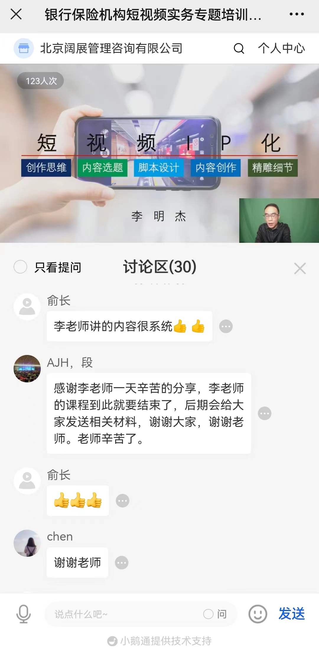 6月11日,《2022銀行保險機(jī)構(gòu)短視頻實務(wù)專題培訓(xùn)班》邀請李明杰老師通過線上直播形式講授《短視頻運(yùn)營策略與技巧》課程。