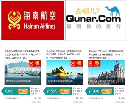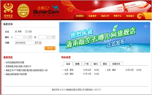 2010年6月,海南航空與去哪兒團(tuán)購網(wǎng)站合作開設(shè)了”海航-去哪兒”旗艦店,獲得了成功;之后在2011年5月,他們又合作推出了特價機(jī)票團(tuán)購活動,為旅客提供性價比更高的機(jī)票團(tuán)購產(chǎn)品,通過團(tuán)購活動獲得大量旅客的實際乘機(jī)體驗,從而得到了良好的推廣效果。