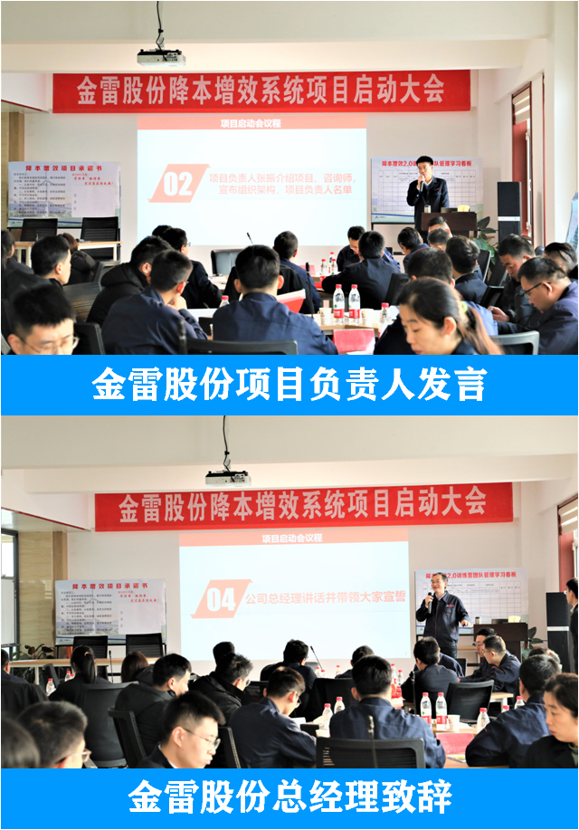 項(xiàng)目啟動(dòng)會(huì)上,金雷股份總經(jīng)理做了啟動(dòng)會(huì)致辭,財(cái)智菁英項(xiàng)目經(jīng)理劉老師發(fā)表了倡導(dǎo)者宣言,公司領(lǐng)導(dǎo)與項(xiàng)目組負(fù)責(zé)人在項(xiàng)目誓言板上簽字,鄭重承諾:①.以身作則、帶頭示范;外部市場(chǎng)增銷量,內(nèi)部運(yùn)營(yíng)減費(fèi)用。②.深入現(xiàn)場(chǎng),優(yōu)化流程;消除浪費(fèi)創(chuàng)價(jià)值,實(shí)際行動(dòng)促成效。 本次金雷股份降本增效咨詢項(xiàng)目,將重點(diǎn)圍繞技術(shù)降本增效、財(cái)務(wù)降本增效、采購(gòu)降本增效、庫(kù)存降本增效、生產(chǎn)降本增效、質(zhì)量降本增效、人資降本增效等七個(gè)模塊開展全價(jià)值鏈的降本增效。