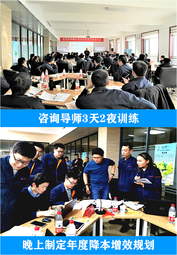 訓(xùn)練的第1天晚上,60多位中高層管理人員在咨詢老師的輔導(dǎo)下制定了各個(gè)項(xiàng)目小組之《2021年降本增效規(guī)劃》,部分團(tuán)隊(duì)成員奮戰(zhàn)到凌晨12點(diǎn)多鐘才休息。 訓(xùn)練的第2天下午,60多位中高層管理人員在咨詢老師的帶領(lǐng)下,在生產(chǎn)現(xiàn)場(chǎng)查找浪費(fèi)與損耗;晚上,團(tuán)隊(duì)共創(chuàng)做出了《浪費(fèi)改善方案》;部分團(tuán)隊(duì)成員奮戰(zhàn)到凌晨1點(diǎn)多鐘才休息。