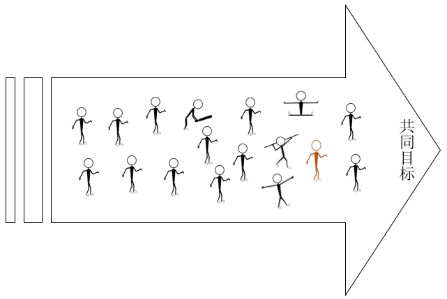 而賦權(quán)型團(tuán)隊(duì)的特征是,全體人員目標(biāo)明確,隊(duì)員擁有一定的自由度,并具有自我管理的權(quán)利和能力,最前面的不一定是領(lǐng)導(dǎo)者(如圖)。賦權(quán)強(qiáng)調(diào)的是個(gè)體的多樣性和主動(dòng)性。在這樣的團(tuán)隊(duì)里,每一個(gè)人可以根據(jù)自己所處的環(huán)境,做出有利于共同目標(biāo)的判斷和決策。比如大學(xué),就是賦權(quán)組織的代表,它從助教到教授才4級(jí),且對(duì)學(xué)術(shù)方面的管理相對(duì)寬松和自由。