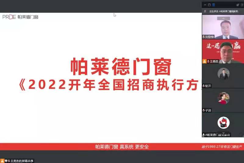 【項目快訊】劉登榜老師團隊與帕萊德門窗再次攜手幫扶2022春季招商線上啟動會!
