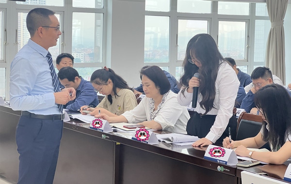 ![]() 郭老師先講解“職業(yè)化”就是一種工作狀態(tài)的標(biāo)準(zhǔn)化、規(guī)范化、制度化,即在合適的時間、合適的地點,用合適的方式,說合適的話,做合適的事。并引導(dǎo)大家小組討論:“我心中標(biāo)準(zhǔn)企業(yè)的職業(yè)素養(yǎng)”,學(xué)員們踴躍發(fā)言,不斷豐富職業(yè)化的內(nèi)涵。