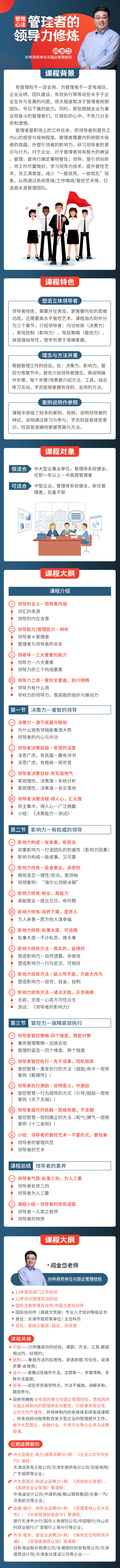 閻老師擁有30年政府單位與國企管理經(jīng)驗,悉知政府與國企體制內(nèi)的管理體系完整性、行政事務(wù)周全性、公文寫作嚴(yán)謹(jǐn)性、并將體制內(nèi)的系統(tǒng)體系研發(fā)成課程,并親自顧問指導(dǎo)數(shù)百家大型企業(yè)的管理提升工作,被中大型國企、金融行業(yè)、外資行業(yè)等企業(yè)多次返聘授課。近期返聘案例