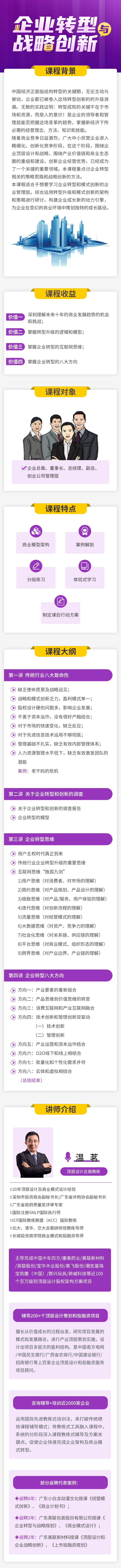 返聘3年:廣東英聯(lián)包裝股份有限公司授課《企業(yè)轉(zhuǎn)型與戰(zhàn)略規(guī)劃》、《商業(yè)模式設(shè)計(jì)》;◆返聘2年:廣東美聯(lián)新材料授課《頂層設(shè)計(jì)和企業(yè)戰(zhàn)略創(chuàng)新》、《上市投融資規(guī)劃》