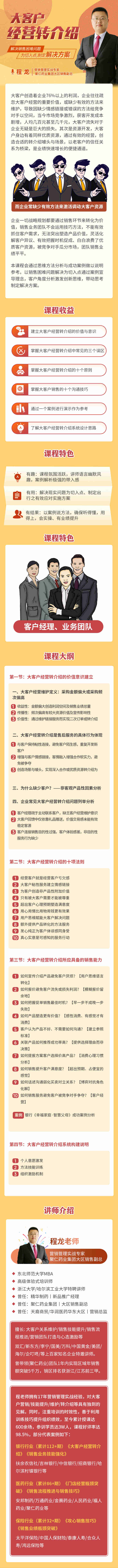 程老師擁有17年?duì)I銷管理實(shí)戰(zhàn)經(jīng)驗(yàn),對(duì)大客戶營(yíng)銷/技能提升/維護(hù)/轉(zhuǎn)介紹等具有獨(dú)到的見解。同時(shí),注重培訓(xùn)的時(shí)效性,善于利用訓(xùn)練技巧提升組織績(jī)效,至今累計(jì)授課達(dá)600余場(chǎng),參訓(xùn)學(xué)員達(dá)3W人,課程好評(píng)率達(dá)98.5%,部分代表案例如下∶