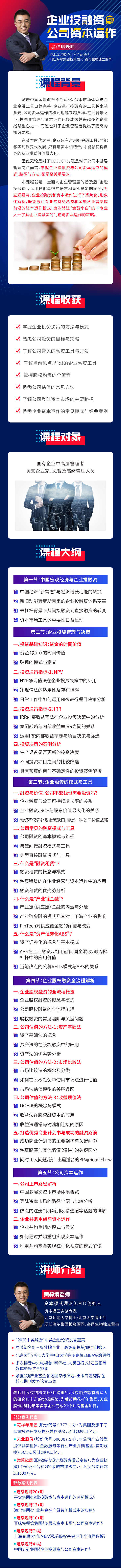 山中國多層次資本市場體系概覽2 登陸資本市場的路徑介紹與比較分析邀1熱點的注冊制、科創(chuàng)板、精選層等話題的詳解二、企業(yè)并購重組與資本運作重企業(yè)并購重組的模式與意義如何通過并購重組實現(xiàn)資本運作邀利用并購基金實現(xiàn)杠桿化裂變的模式解讀