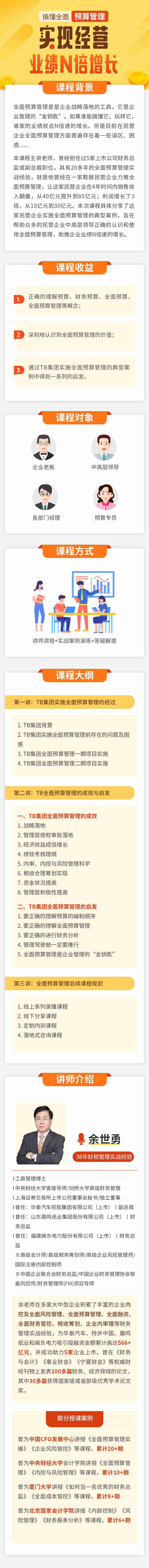 E曾為中國CFO發(fā)展中心講授《全面預(yù)算管理實操》《企業(yè)風(fēng)險管控》等課程,累計20+期