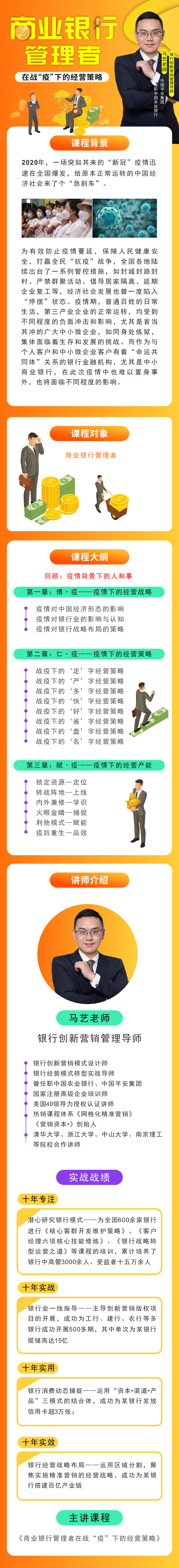 銀行業(yè)一線指導(dǎo)一一主導(dǎo)創(chuàng)新營銷版權(quán)項(xiàng)目的開展,成功為工行、建行、農(nóng)行等多銀行成功開展500多期,其中單次為某銀行攬儲(chǔ)高達(dá)15億