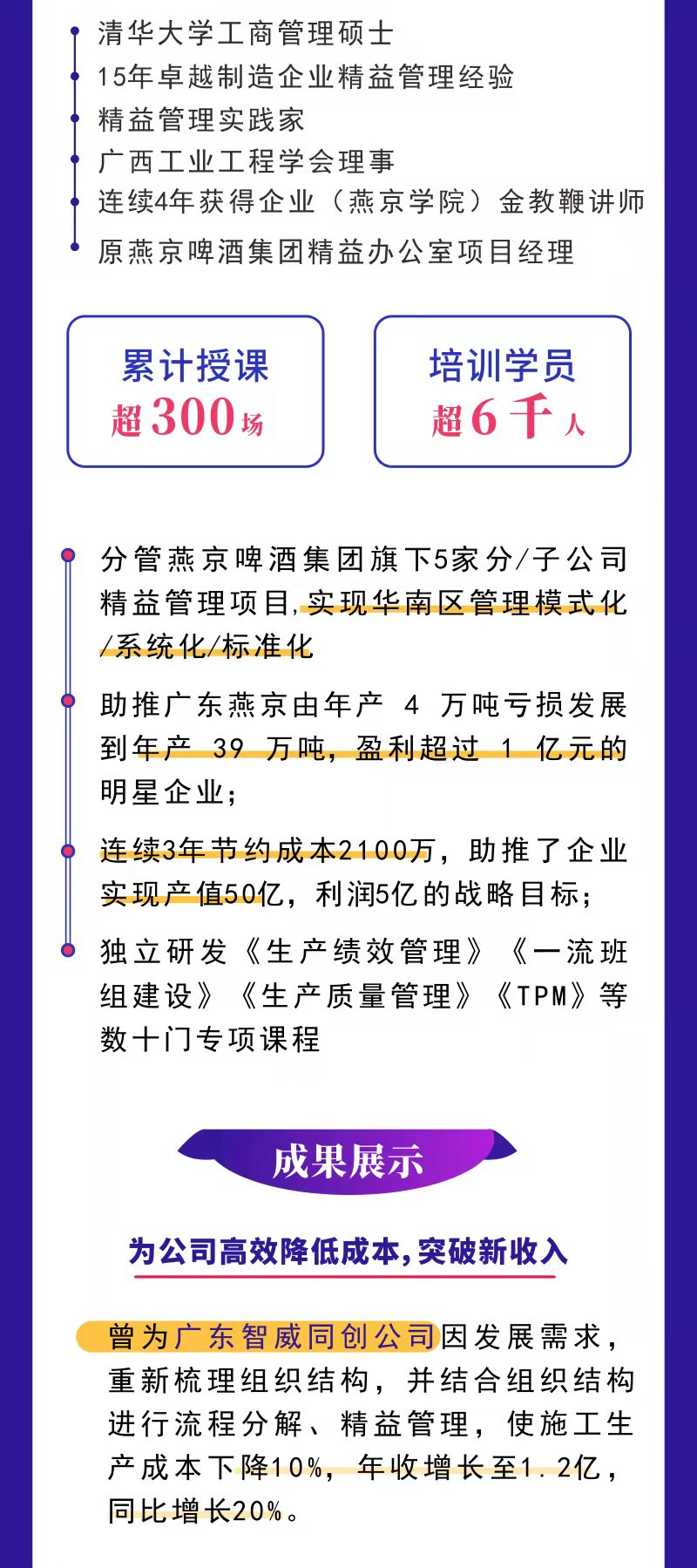 連續(xù)4年獲得企業(yè)(燕京學院)金教鞭講師原燕京啤酒集團精益辦公室項目經(jīng)理