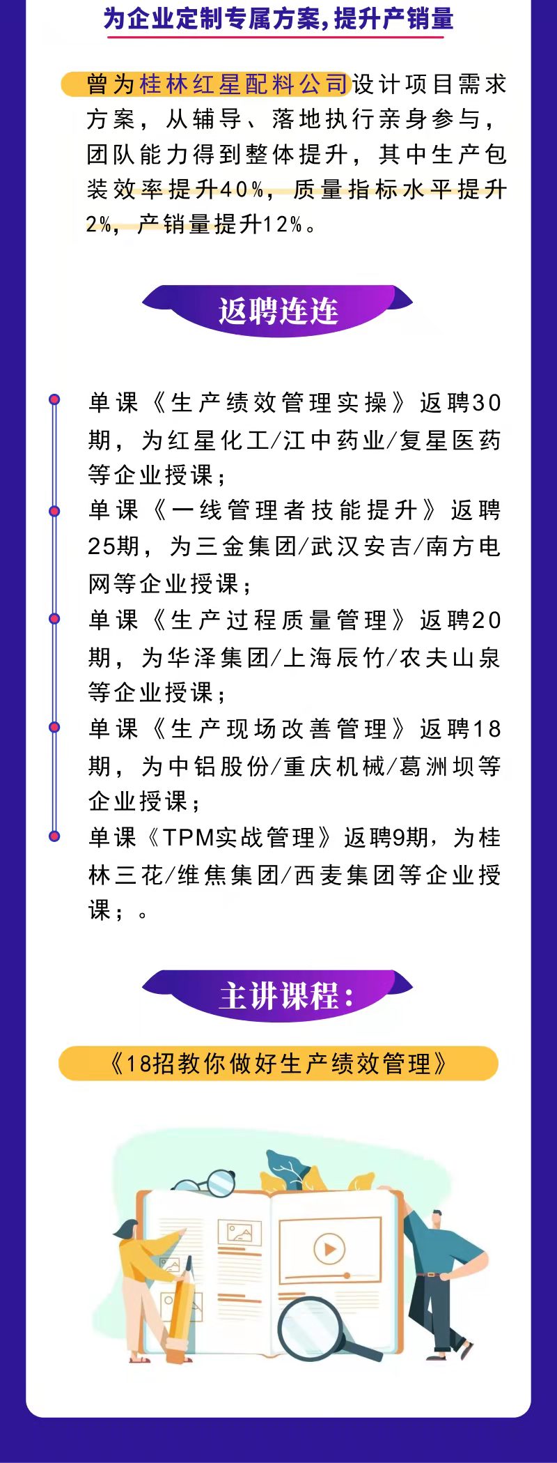 獨立研發(fā)《生產(chǎn)績效管理》《一流班組建設》《生產(chǎn)質(zhì)量管理》《TPM》等數(shù)十門專項課程