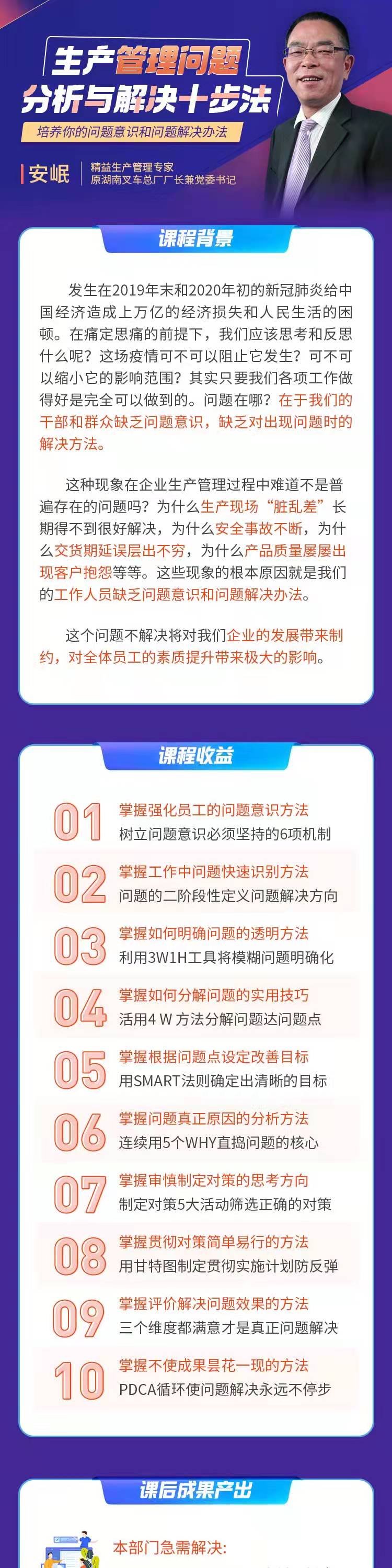 安岷老師德高望重,這么對(duì)年來對(duì)培訓(xùn)行業(yè)一直治學(xué)嚴(yán)謹(jǐn);將自己一生的心血經(jīng)驗(yàn)投入培訓(xùn)教育中去;為航天、電子、煙草等行業(yè)在精益生產(chǎn)管理中提供學(xué)以致用的知識(shí)點(diǎn),從而化為效益倍增的實(shí)戰(zhàn)成果。