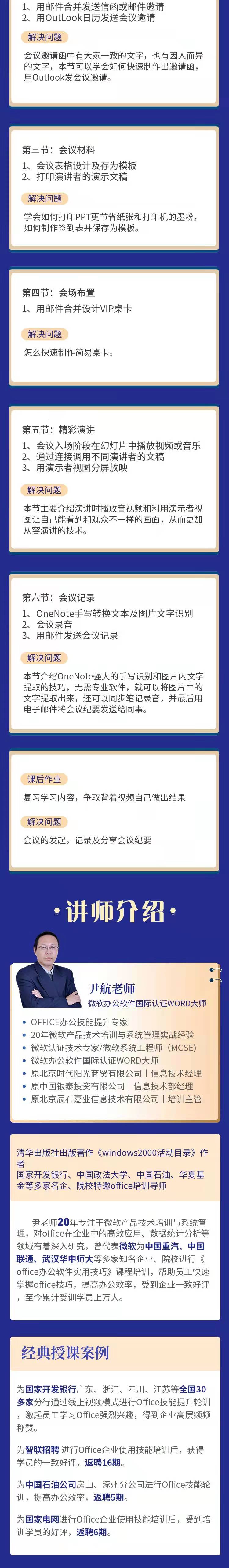 以工作場景為背景,突出工作中經(jīng)常發(fā)生的問題,案例教學(xué),確保線上課程聽的懂、拿得走、用得上、有實效