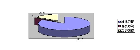 通過調(diào)查發(fā)現(xiàn),在所選的148人中,有85.1%的人會選擇框架眼鏡的近視眼鏡,15.5%的人選擇框架眼鏡的裝飾眼鏡,但遠視眼鏡的比例卻為0,由此數(shù)據(jù)看,框架的近視眼鏡占了絕對的優(yōu)勢。