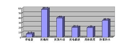 (2)從鏡片功能的需求中可以發(fā)現(xiàn):消費者對防輻射和防紫外線的鏡片很喜愛,說明消費者購買眼鏡時主要是為了防止輻射和紫外線,而其余的相對都比較低。