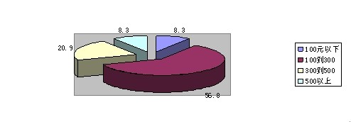 通過調(diào)查,我們發(fā)現(xiàn)參與調(diào)查的132個消費者對框架眼鏡的可接受價格中,有56.8%的人選擇100元到300元,20.9%的人選擇300元到500元。100元以下及500元以上的各占了8.3%,由此可見消費者所接受的價格區(qū)間是在100-300元之間。
