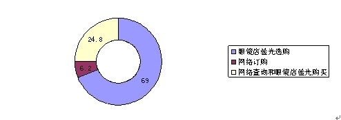 在對參與調(diào)查框架裝飾眼鏡選擇的購買方式的127人中,有64.6%的人選擇的是眼鏡店選購,有23.6%的人選擇網(wǎng)絡(luò)查詢和眼鏡店選購,還有12.6%的人選擇了網(wǎng)絡(luò)訂購。數(shù)據(jù)表明,眼鏡店購買還是存在很大的優(yōu)勢的。