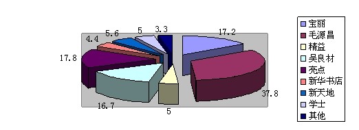 通過調(diào)查,發(fā)現(xiàn)消費者在購買眼鏡地點的選擇上,毛源昌眼鏡店高居于首,有37.8%的消費者選擇在毛源昌購買眼鏡,而寶麗,亮點,吳良材都居于其中,并且差距都不大,分別為17.2%,17.8%,16.7%,而其他的眼鏡店的購買率都很低,連10%都不到。