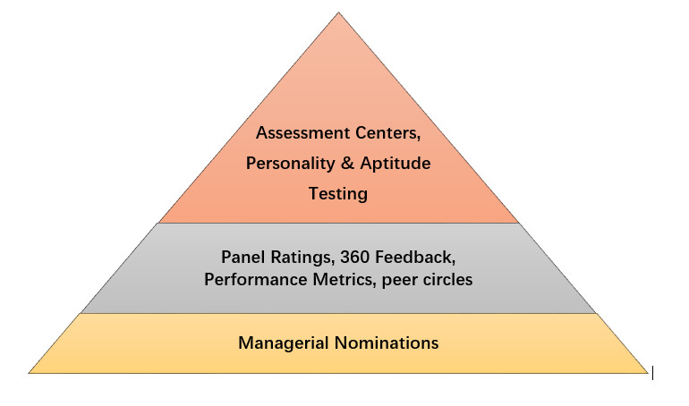 甄別高潛人才的方法有經(jīng)理提名、360°評估、績效指標、性格測試、測評中心等;評估高潛人才晉升準備度,我們可以考慮其是否完成相應的課程、輪崗、學位、發(fā)展性項目,也需要考慮經(jīng)理、同事、客戶的推薦程度。在信息和知識盈余的時代,我們的工具箱里琳瑯滿目,每一項工具的使用成本(人力、金錢、時間)、操作難度、客觀有效性是不同的。重要的是,根據(jù)企業(yè)的自身情況選擇恰當?shù)墓ぞ呓M合。