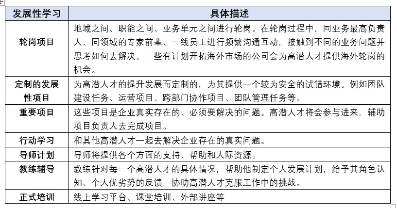 目前,大部分的高潛人才項目都會提供多樣化、發(fā)展性的工作經(jīng)歷和學習機會,創(chuàng)造良好的學習體驗。項目設計會盡量模擬真實的工作環(huán)境,為高潛人才提供一個安全的試錯環(huán)境。